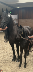 Twee uur later was ons volgende veulen aan de beurt. En dan nog wel van mijn lievelingsmerrie Amy-Grace fan Scyedam met haar veulen Zara- Grace vernoemd naar haar moeder. Wat een prachtig beeld gaven die twee, Amy met haar mooie manen , haar veulen gitzwart en mooi in model. Natuurlijk waren we weer opnieuw gespannen over het juryoordeel.